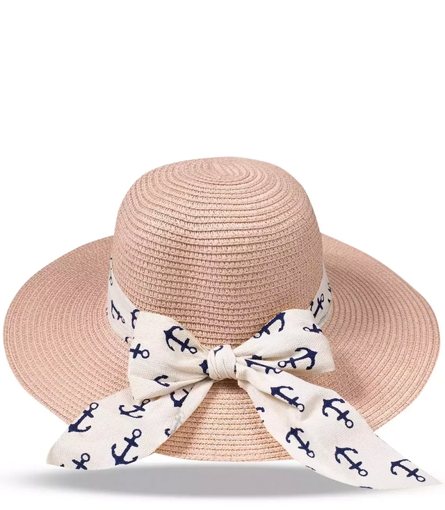Damski kapelusz słomkowy z kokardą marynarski styl