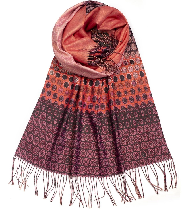 Ozdobny szal chusta ETNO wzór Połysk Długi Gładki Elegancki