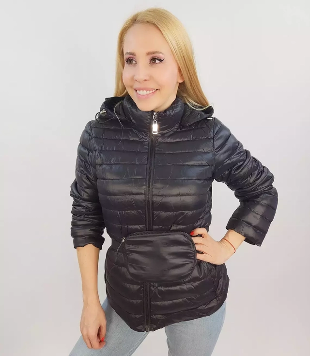 Krótka pikowana kurtka przejściowa z saszetką