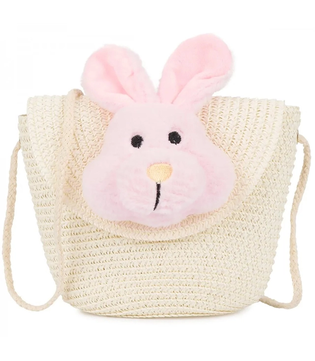 Children's straw bag with plush bunny