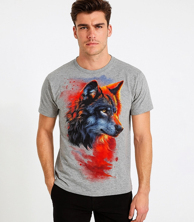 Men's large wolf print t-shirt cotton