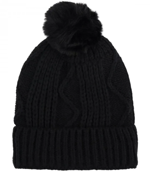 Warm women's cap with pom-pom autumn winter monochrome hat