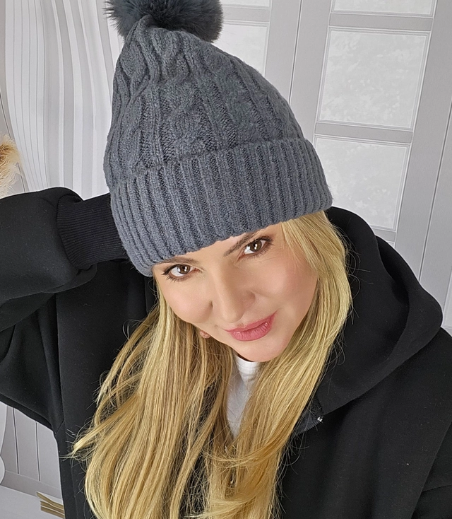 Warm women's cap with pom-pom autumn winter monochrome hat