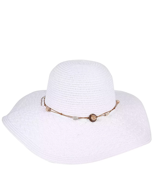 Women's straw hat with pebbles large brim