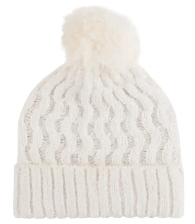 Warm women's beanie with pom-pom in ribbed weave autumn winter