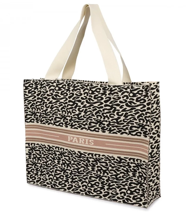 Large plaid shuttle bag with horizontal stripes with PARIS lettering