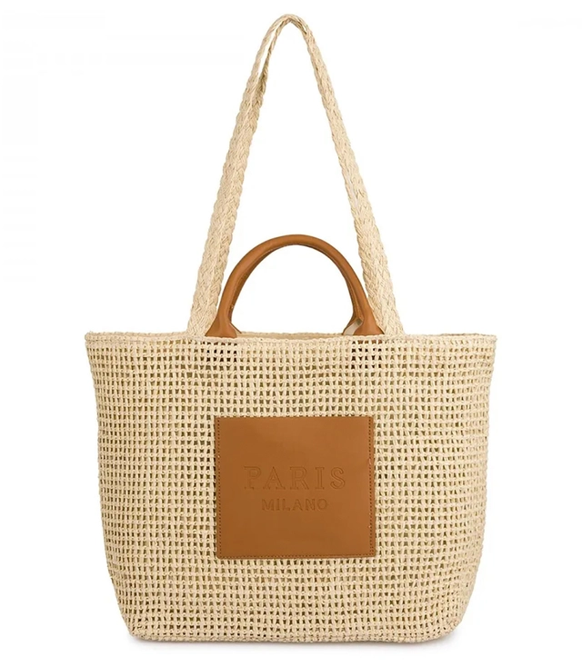 Large braided shoper bag Stylish with inscription PARIS