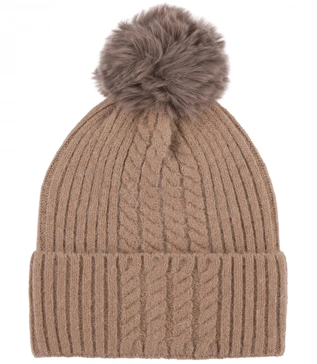 Warm women's cap with pom-pom and interesting weave autumn winter hat