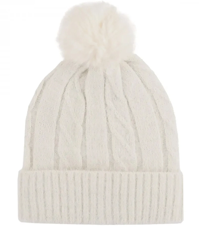 Warm women's cap with pom-pom and interesting weave autumn winter hat