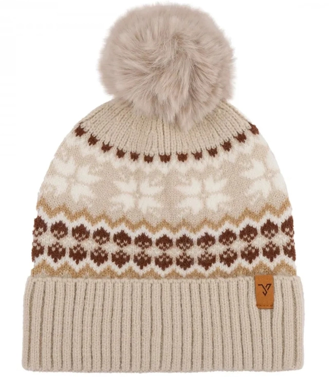 Warm women's cap with pom-pom in Norwegian pattern autumn winter