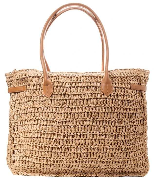 Large rectangular straw beach bag with eco-leather handles