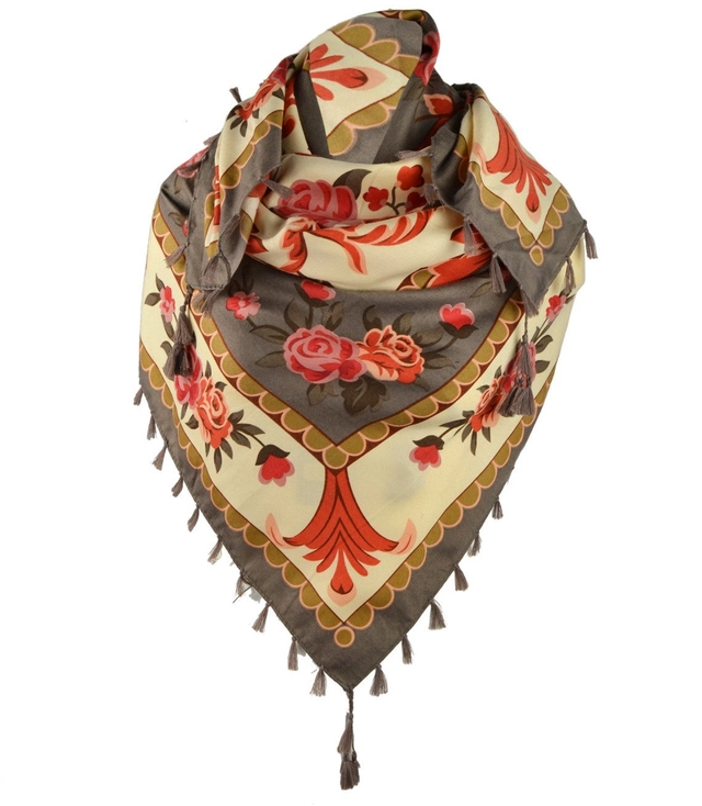 Beautiful soft elegant shawl with roses folk pattern