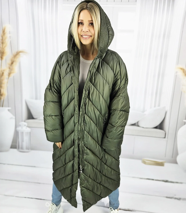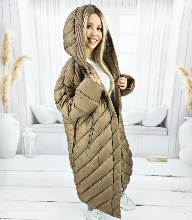 Long jacket women's coat with diagonal quilting Warm LUCY