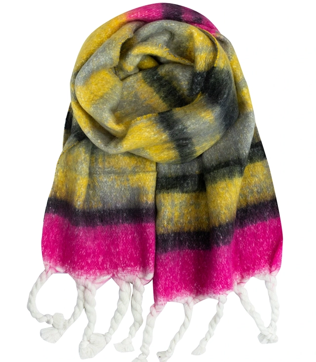 Warm scarf, stripes, fluffy knitwear