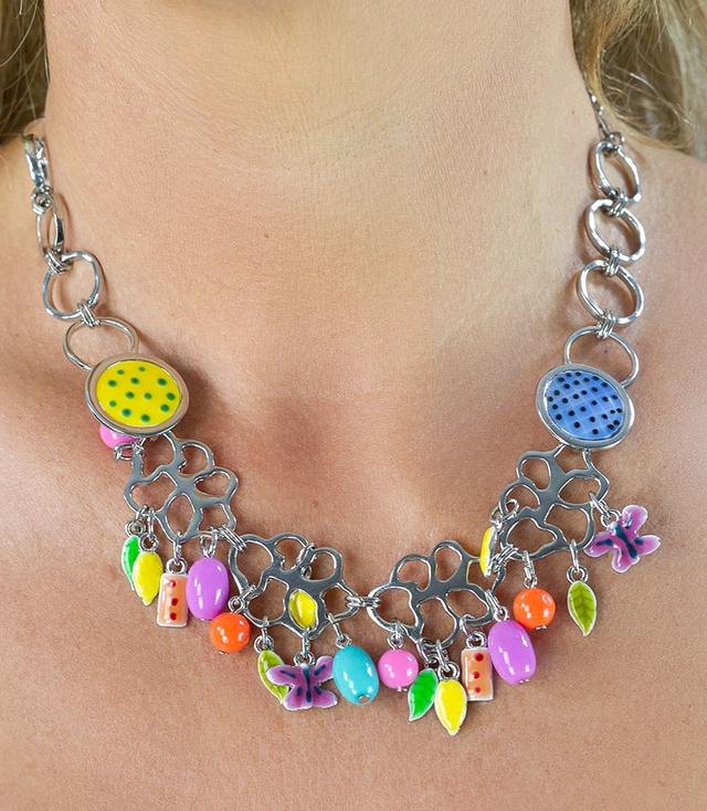 Rich stainless steel necklace with colorful pendants