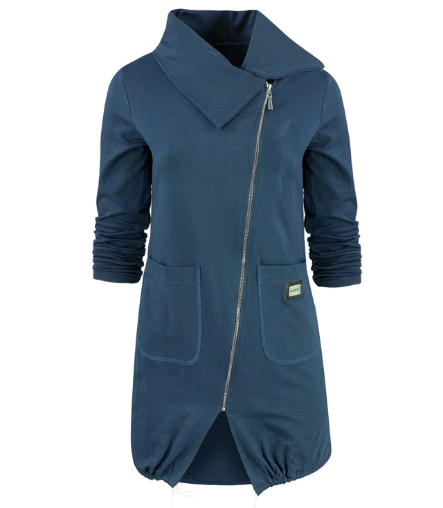 Thin long sweatshirt with a diagonal zipper and a BEATA neck warmer