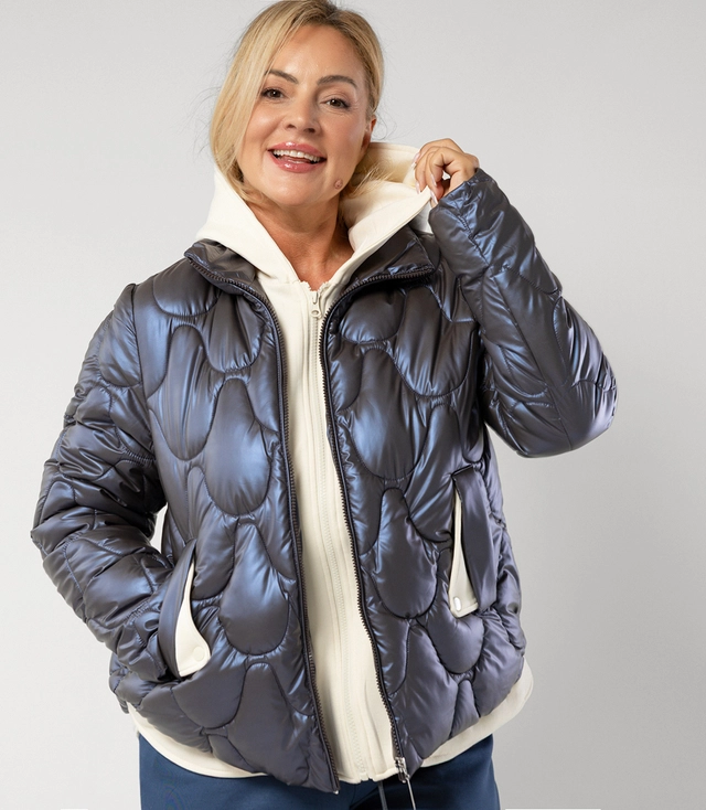 Quilted jacket with pearl sheen and tracksuit inserts ARIA
