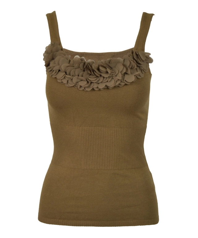 Women's tank top. Decorative flowers around the neckline
