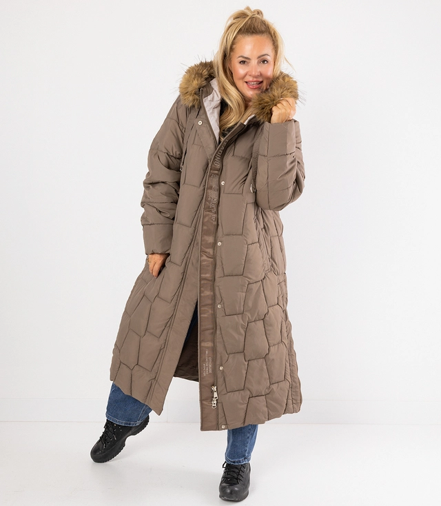 Quilted winter jacket with hood decorated with fur ARIA PUFF PLUS SIZE