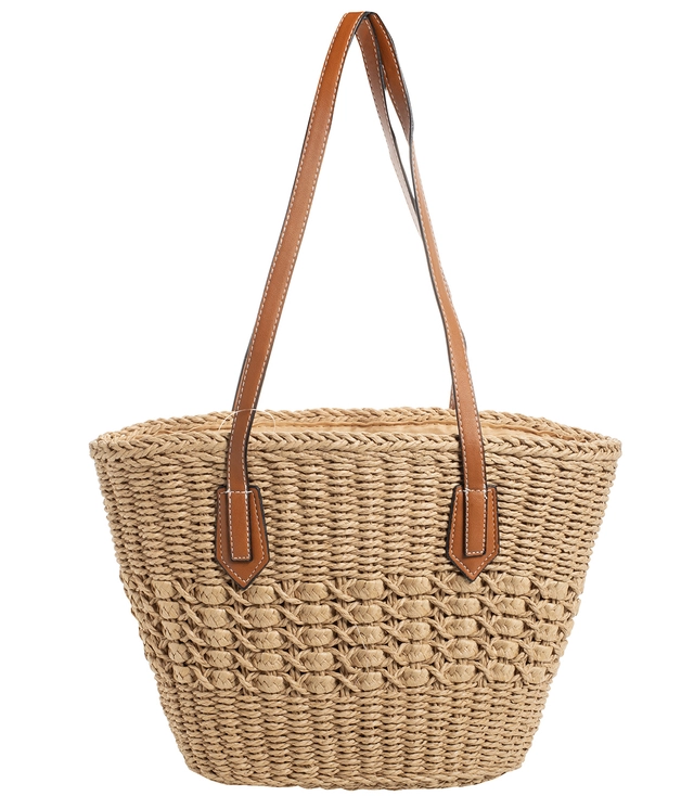 Medium basket, summer bag, stiff handbag, woven eco-leather handles