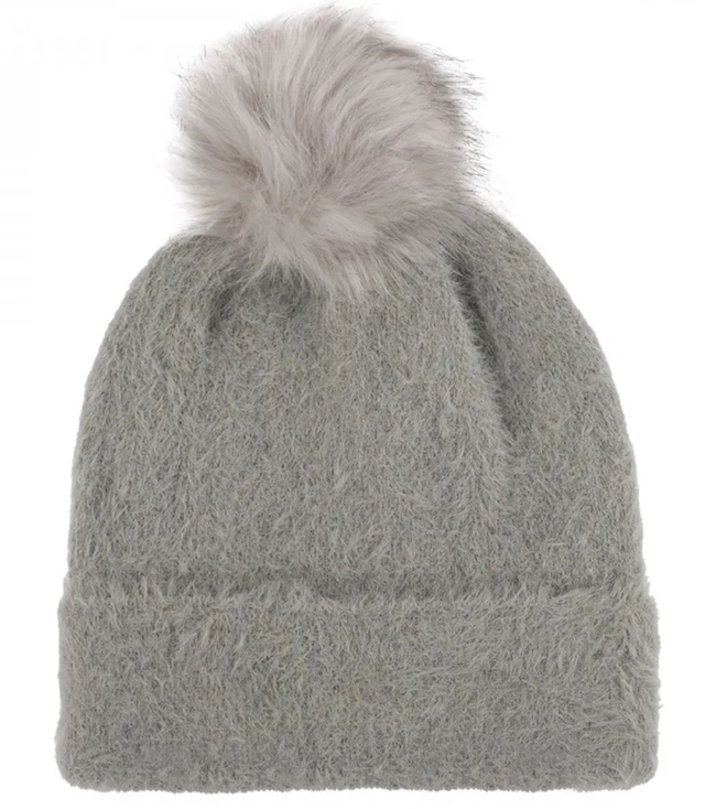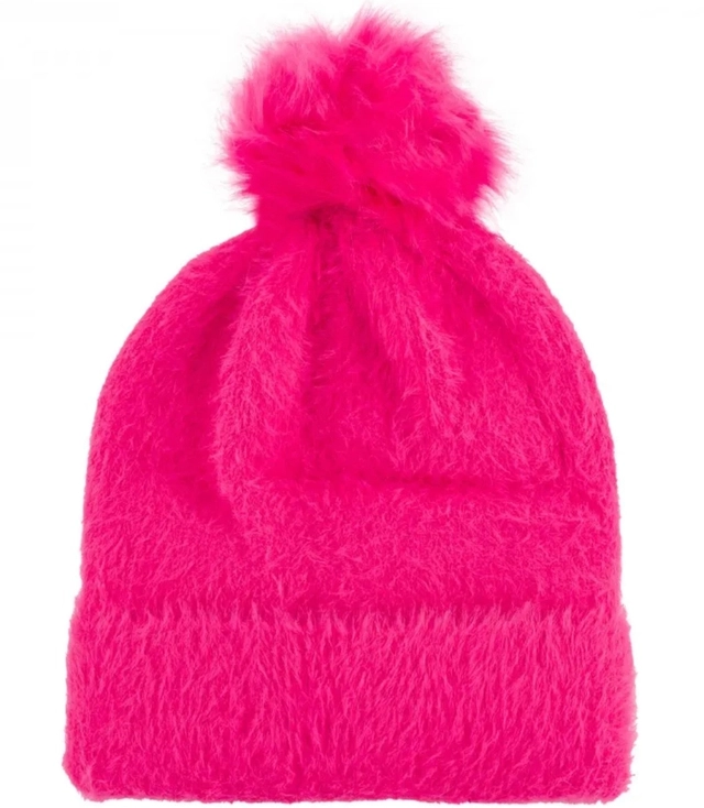 Warm fluffy women's cap with pom-pom autumn winter hat