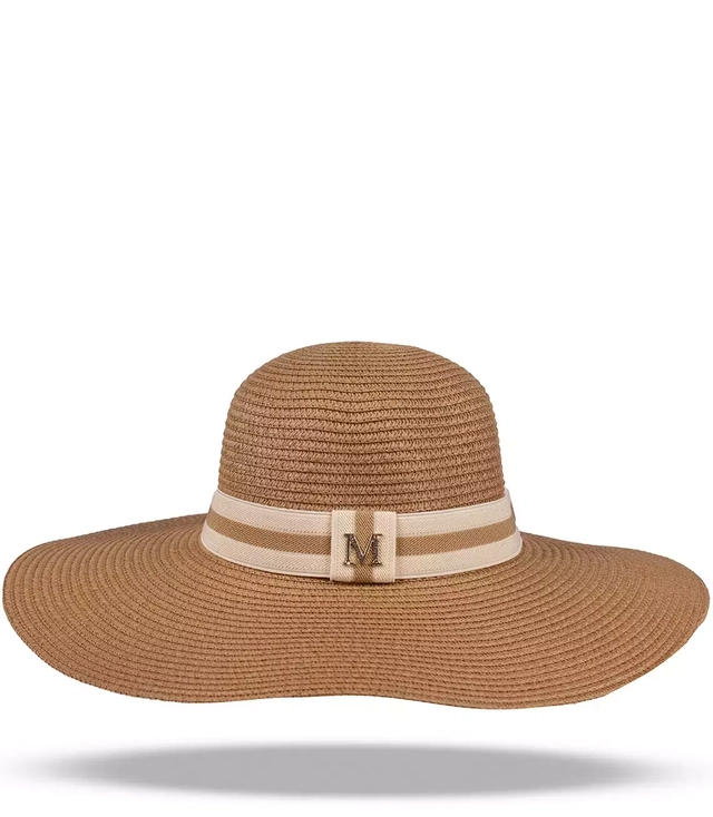 Duży damski kapelusz słomkowy z taśmą i literą M