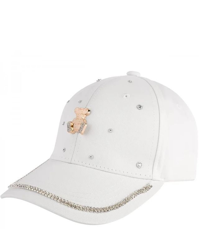 Dziecięca czapka z daszkiem ozdobiona cyrkoniami i złotym misiem