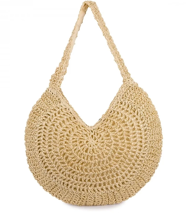 Pleciona Torba Hobo z rafii zapinana na suwak Pojemna