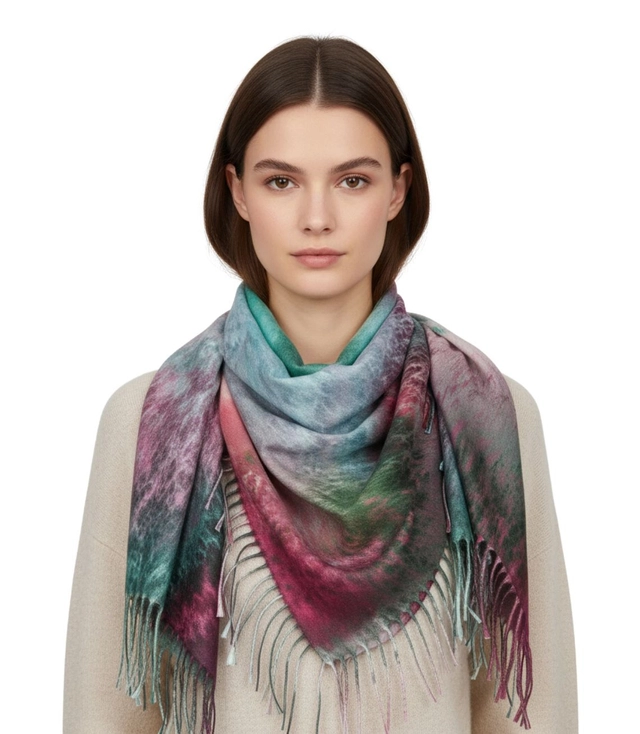 Modna wielokolorowa chusta szal szalik z frędzlami