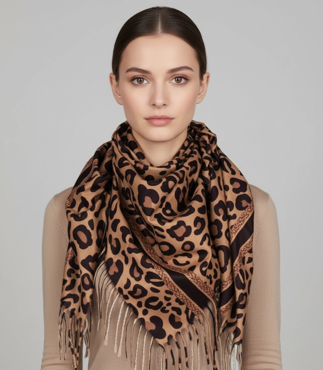 Modna chusta szalik w panterkę elegancki szal z frędzlami