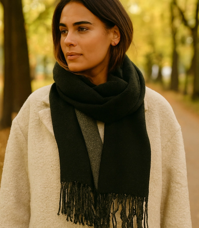 Gładki elegancki szal z frędzlami dwustronny 180x70