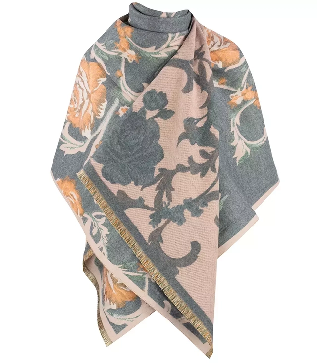 Ciepły szal szalik kwiaty dwustronna dzianina