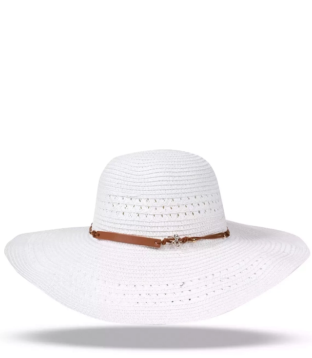 Damski kapelusz słomkowy z rzemykiem z perełkami