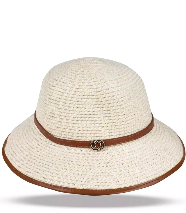 Damski kapelusz słomkowy z rzemykiem z perełkami