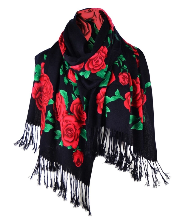 Piękny miękki elegancki szal w róże wzór folk