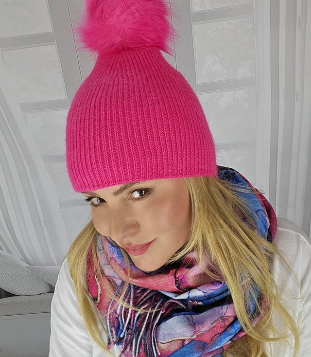Ciepła czapka damska z pomponem jesienna zimowa jednokolorowa