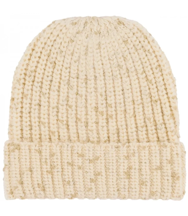 Ciepła czapka damska ze złotą nitką BEANIE zimowa jesienna