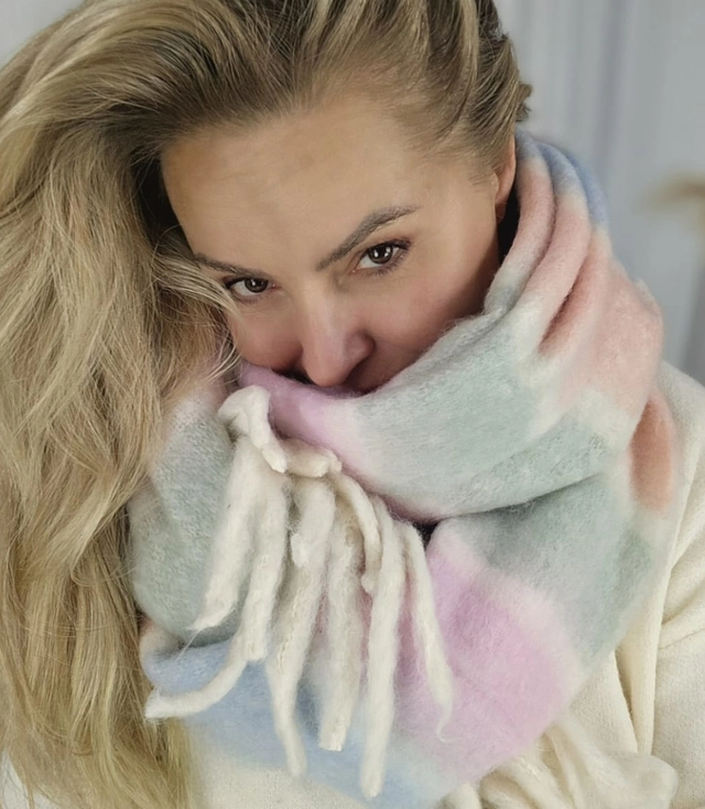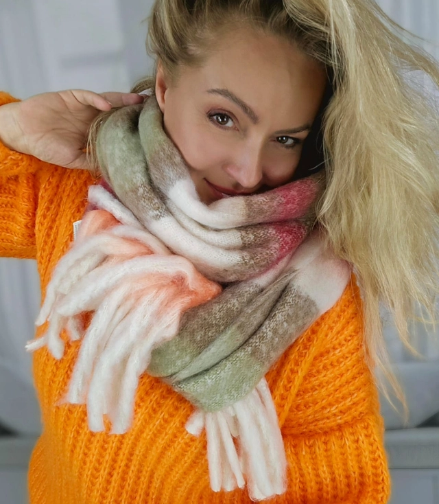 Ciepły szal szalik krata kratka pastelowy dzianina