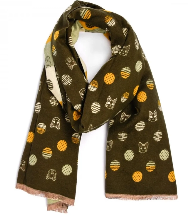 Ciepły szal szalik koty kropki elegancki stylowy 180x70 cm