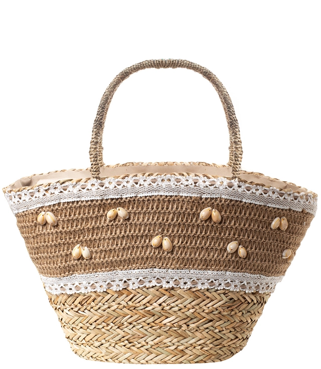 Mega duża letnia torba pleciona koszyk z podszewką muszelki