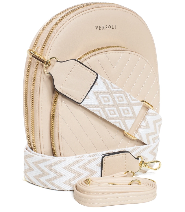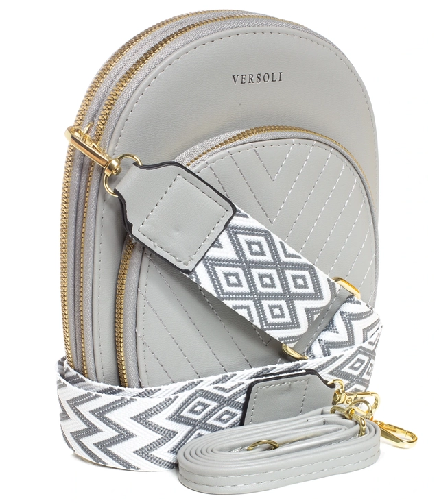 Mała stylowa mini torebka zaokrąglona 3 komory 2 paski Elegancka
