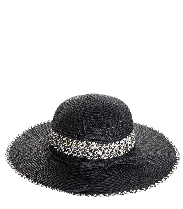 Damski kapelusz słomkowy złota nitka z dużym rondem