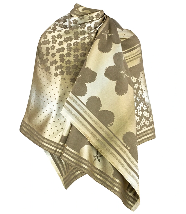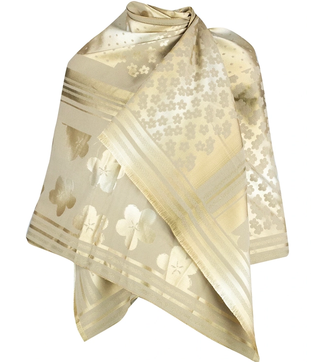 Elegancki dwustronny szalik z złotą nitką i wzorem w kwiaty