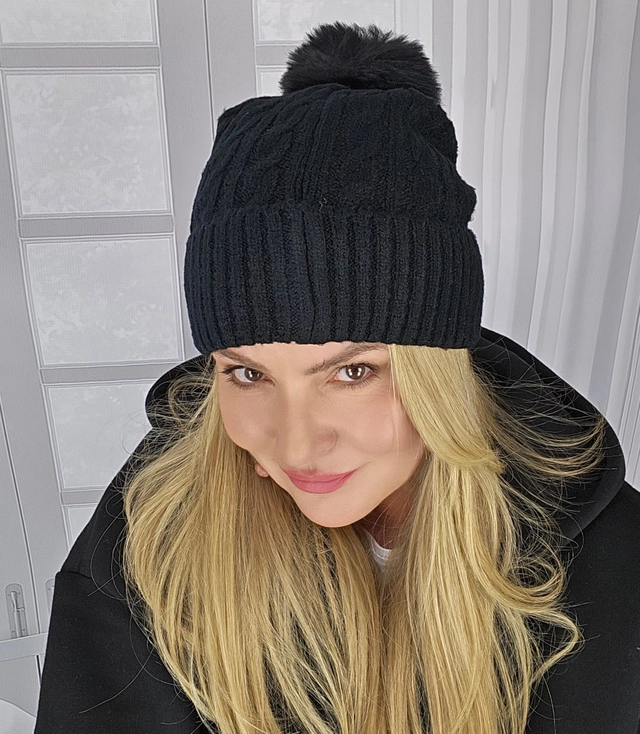 Ciepła czapka damska z pomponem jesienna zimowa jednokolorowa