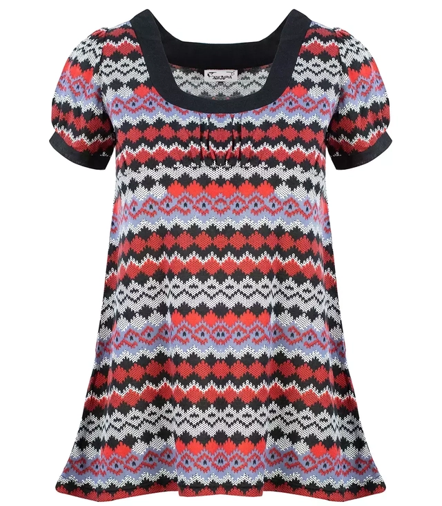 Bluzka Tunika etno nadruk Boho Rozkloszowana
