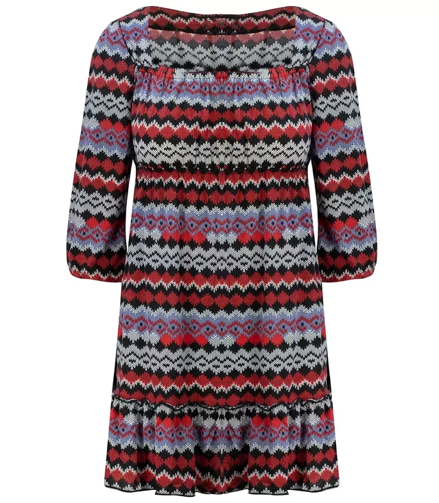 Bluzka Tunika etno nadruk Boho Rozkloszowana