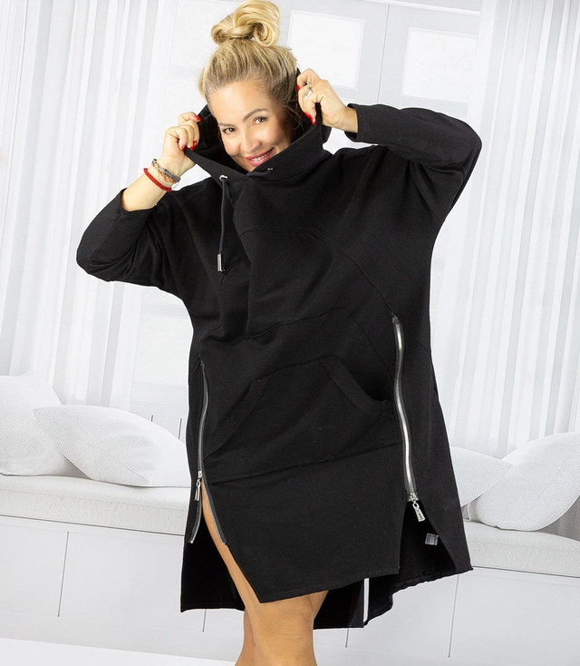 Damska długa bluza z kapturem oversize z suwakami LILIANA