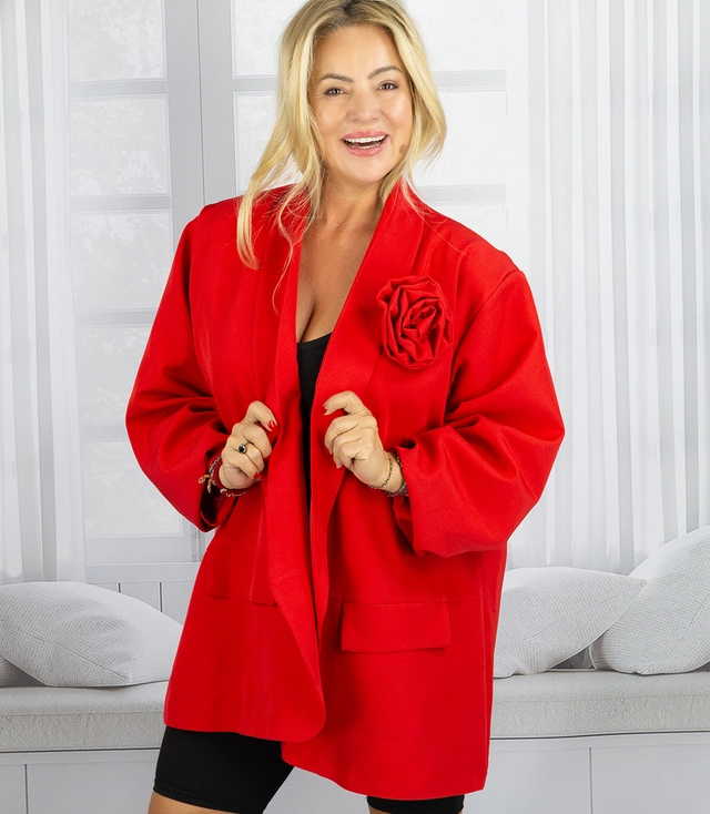 Marynarka oversize z odpinaną różą i marszczonymi rękawami ROSA