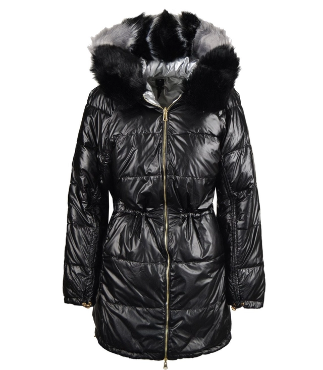 Długa metaliczna dwustronna zimowa kurtka
