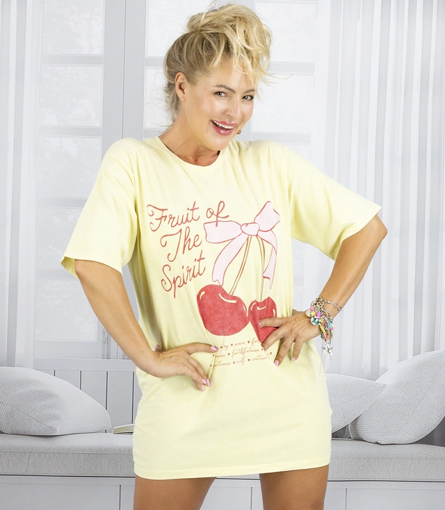 Długi damski T-shirt tunika luźny fason nadruk z wiśniami SUMMER